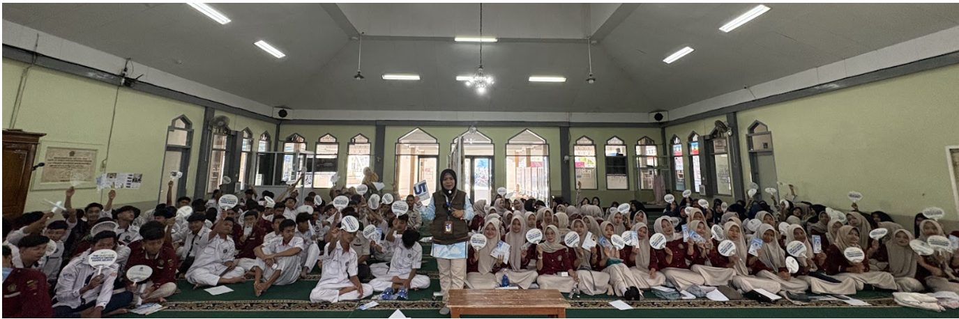 Wonosobo, 18 November 2025 – Universitas Terbuka (UT) melalui SALUT Wonosobo mengadakan kegiatan sosialisasi di SMK Muhammadiyah 1 Wonosobo pada Selasa, 18 November 2025. Acara berlangsung mulai pukul 07.30 WIB hingga selesai dan bertempat di Masjid SMK Muhammadiyah 1 Wonosobo. Sosialisasi ini dipimpin oleh Suprapto, S.Pd, bersama tim SALUT Wonosobo, dengan jumlah peserta mencapai 318 siswa. Kegiatan ini diikuti oleh siswa dari berbagai program keahlian, yaitu Akuntansi dan Keuangan Lembaga, Bisnis Daring dan Pemasaran, Rekayasa Perangkat Lunak, Teknik dan Bisnis Sepeda Motor, serta Teknik Komputer dan Jaringan. Sosialisasi bertujuan memberikan pemahaman kepada siswa tentang konsep pendidikan terbuka dan jarak jauh yang ditawarkan oleh Universitas Terbuka, termasuk keunggulan sistem pembelajaran yang fleksibel, terjangkau, dan dapat diakses oleh siapa saja.