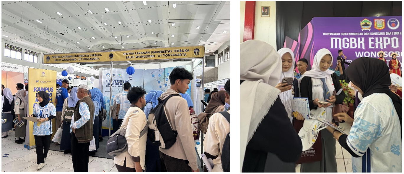 Wonosobo, 19 November 2025 – Universitas Terbuka (UT) melalui Sentra Layanan UT (SALUT) Wonosobo sukses berpartisipasi dalam kegiatan Musyawarah Guru Bimbingan dan Konseling (MGBK) Wonosobo 2025 yang berlangsung pada Selasa–Rabu, 18–19 November 2025 di Gedung Sasana Adipura Kencana, Wonosobo. Kegiatan ini mengusung konsep Edufair yang dihadiri oleh ribuan peserta dari berbagai sekolah menengah atas dan kejuruan di Kabupaten Wonosobo. MGBK Wonosobo tahun ini diikuti oleh berbagai perguruan tinggi dan dunia kerja dari wilayah DIY dan Jawa Tengah, menjadikan acara ini sebagai ajang strategis untuk memperkenalkan peluang pendidikan dan karier kepada siswa SMA/SMK.